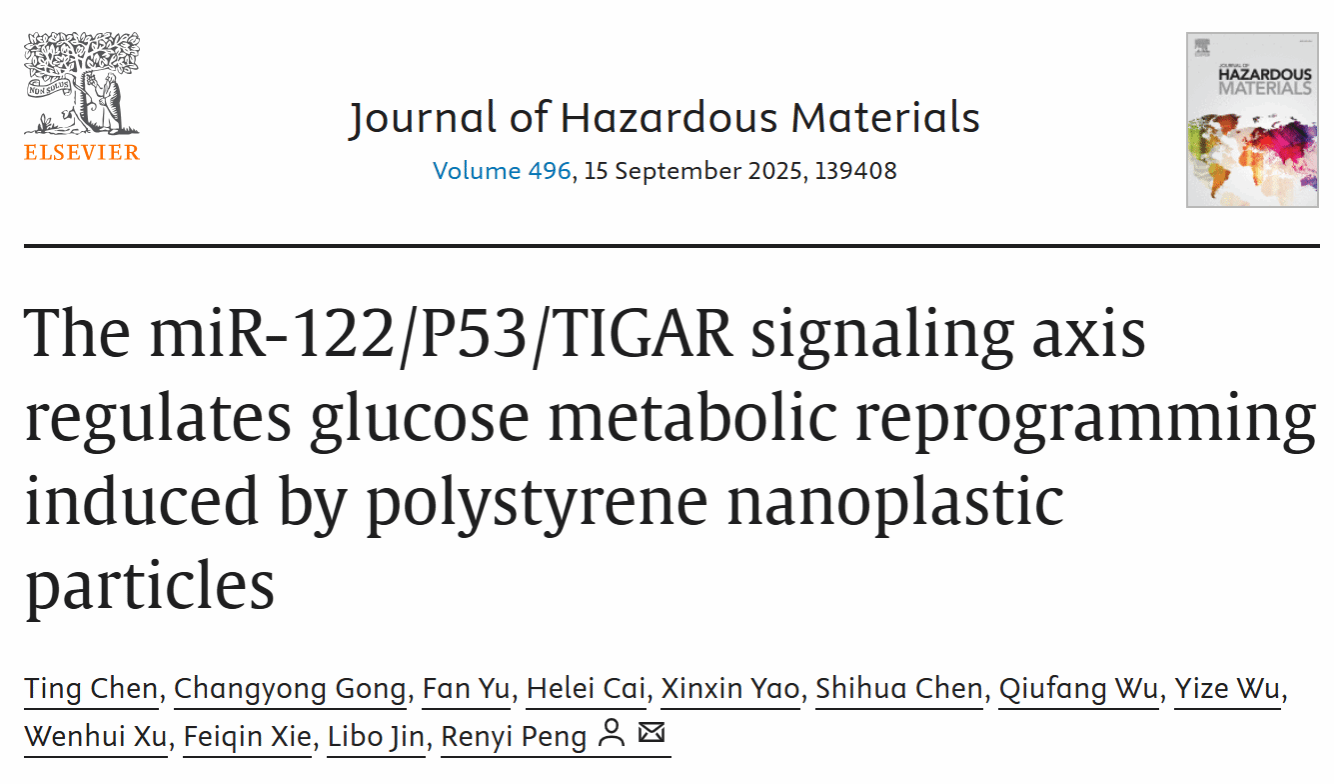 近日,米兰官方网页版_米兰(中国)生命与环境科学学院彭仁义课题组在中科院一区期刊《Journal of Hazardous Materials》(IF=11.3)发表了题为“The miRNA-122/P53/TIGAR signaling axis regulates glucose metabolic reprogramming induced by polystyrene nanoplastic particles”最新研究。该研究聚焦聚苯乙烯纳米塑料(PS-NPs)污染这一全球性威胁,深入探究其通过靶向miRNA-122对糖代谢重编程的复杂影响机制。