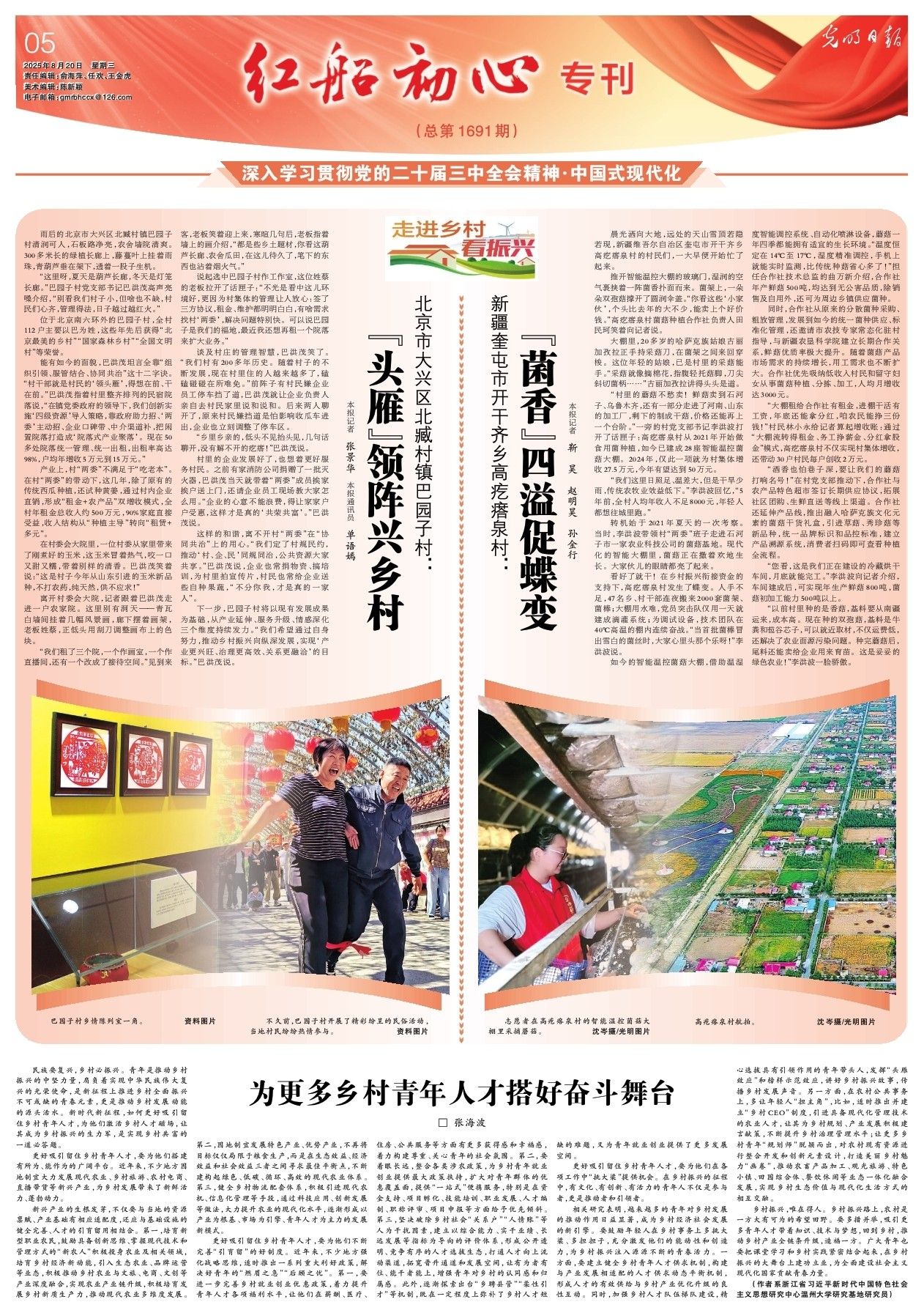 更好吸引留住乡村青年人才,要为他们在各项工作中“挑大梁”提供机会。在乡村振兴的征程中,有文化、有创新、有活力的青年人不仅是参与者,更是推动者和引领者。