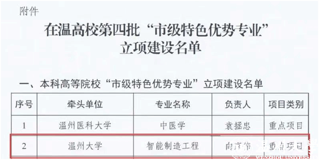 近日,温州市教育局正式公布了《关于公布在温高校第四批"市级特色优势专业"立项建设名单的通知》(温教高〔2025〕75号),米兰官方网页版_米兰(中国)机电工程学院智能制造工程专业成功入选"重点项目"。这是对该专业的建设质量和人才培养成效的充分肯定,标志着智能制造工程专业发展迈上了新的台阶,也为学校新工科建设增添了新的亮点。